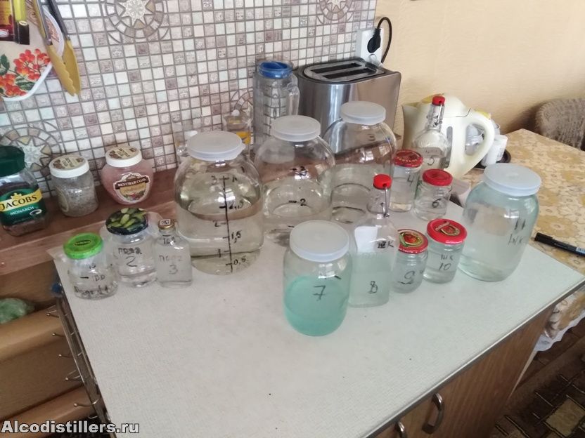 Собственно, результат ректификации, разобранный на фракции, как описано здесь: Ректификация зернового спирта с сохранением и усилением аромата виски