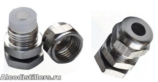 Ранее, в одном из магазинов для винокуров, были приобретены штуцеры для электронных термометров, в которые как раз влазит датчик DS18B20.