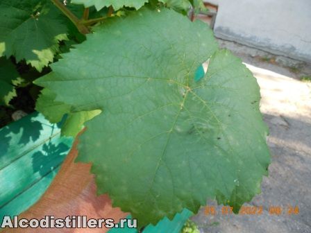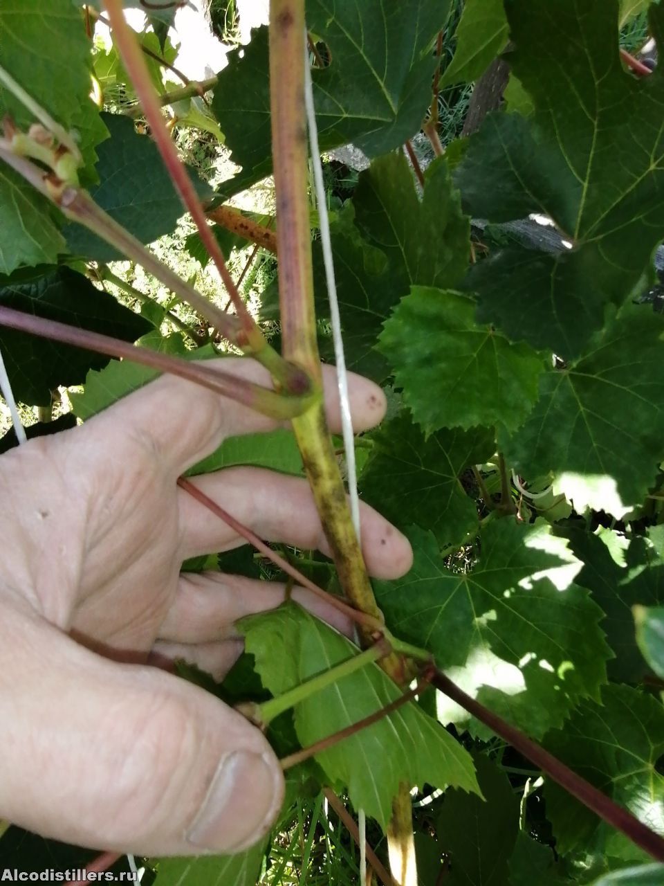 Словил грибковое заболевание на нескольких свежих побегах винограда, скорее всего я виноват сам, так как решил прикрыть часть куста снизу спанбондом для утепления, но по итогу такой жары только все испортил... Несмотря на это, урожай с этих лоз уже снят и пришло время немного их подлечить, так как планируемый прирост хочу использовать для декоративных целей, то есть раскладывать на забор. На данный момент один рукав у меня уже примерно 5 метров, в другую сторону второй рукав еще три метра, вот длинный и рядом с ним и прихворнули.