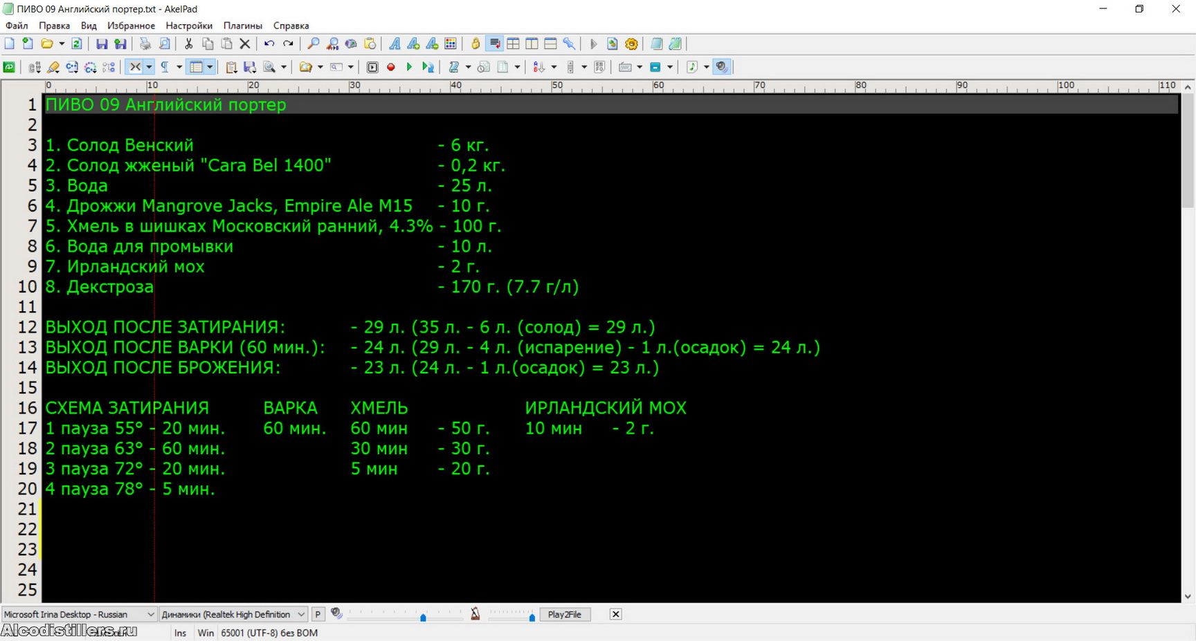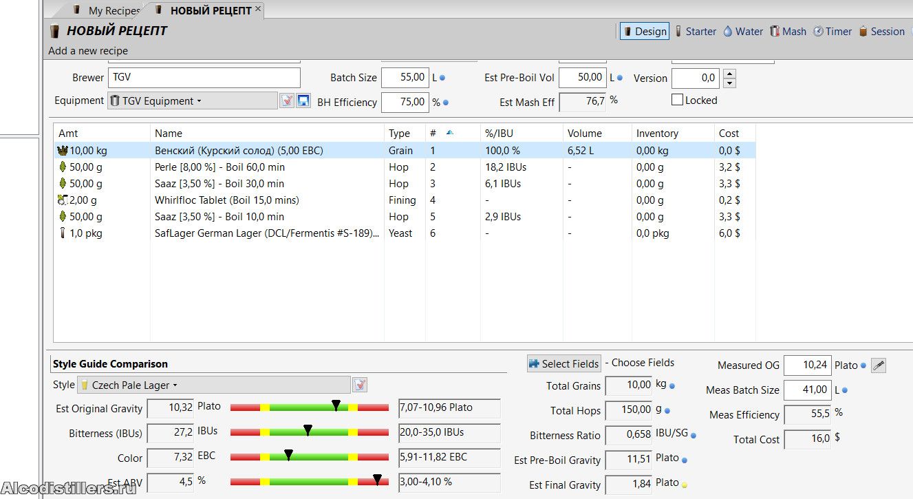 Позволяет создавать свой рецепт пива из огромного ассортимента ингредиентов с автоматическим расчетом плотности, цветности, уровня карбонизации и других важных параметров в зависимости от предустановленного стиля создаваемого пива.
