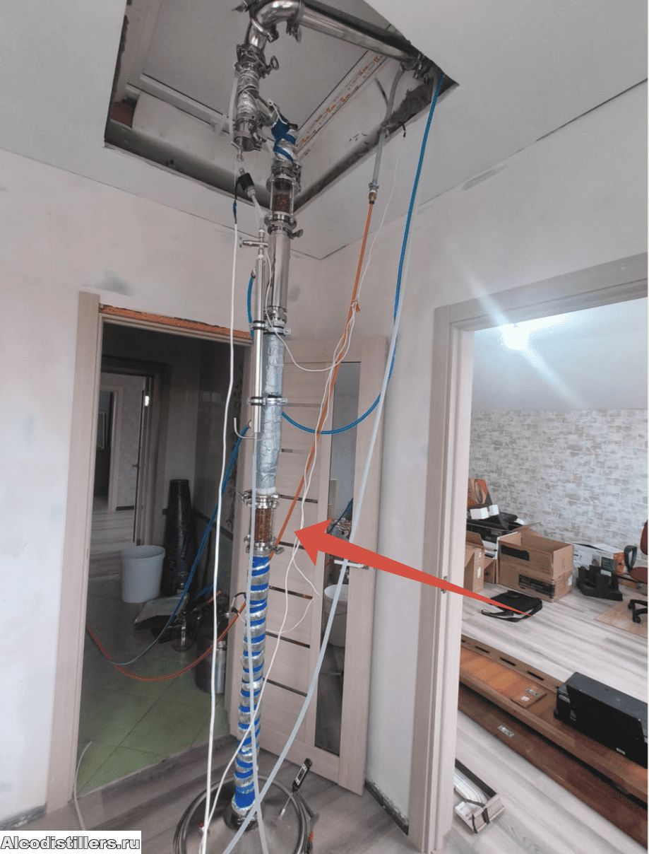 Стало очень удобно дожимать остатки спирта по уровню барботажа в среднем диоптре. Думаю до 96-97 градусов в баке дожать, а остальное с хвостами собрать для оборота. За идею с диоптром большое всем спасибо, пригодилось. Дожимаю на 2,14 кВт, начинал прогон с 2,05 кВт. Вилка стала меньше по мощности, стабилизировал видимо лучше колонну я.
