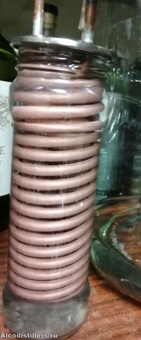 После очередной ректификации на димроте остался бурый налёт. Противно пахнет (хвосты отгонял), пачкает руки, и просто некрасиво.