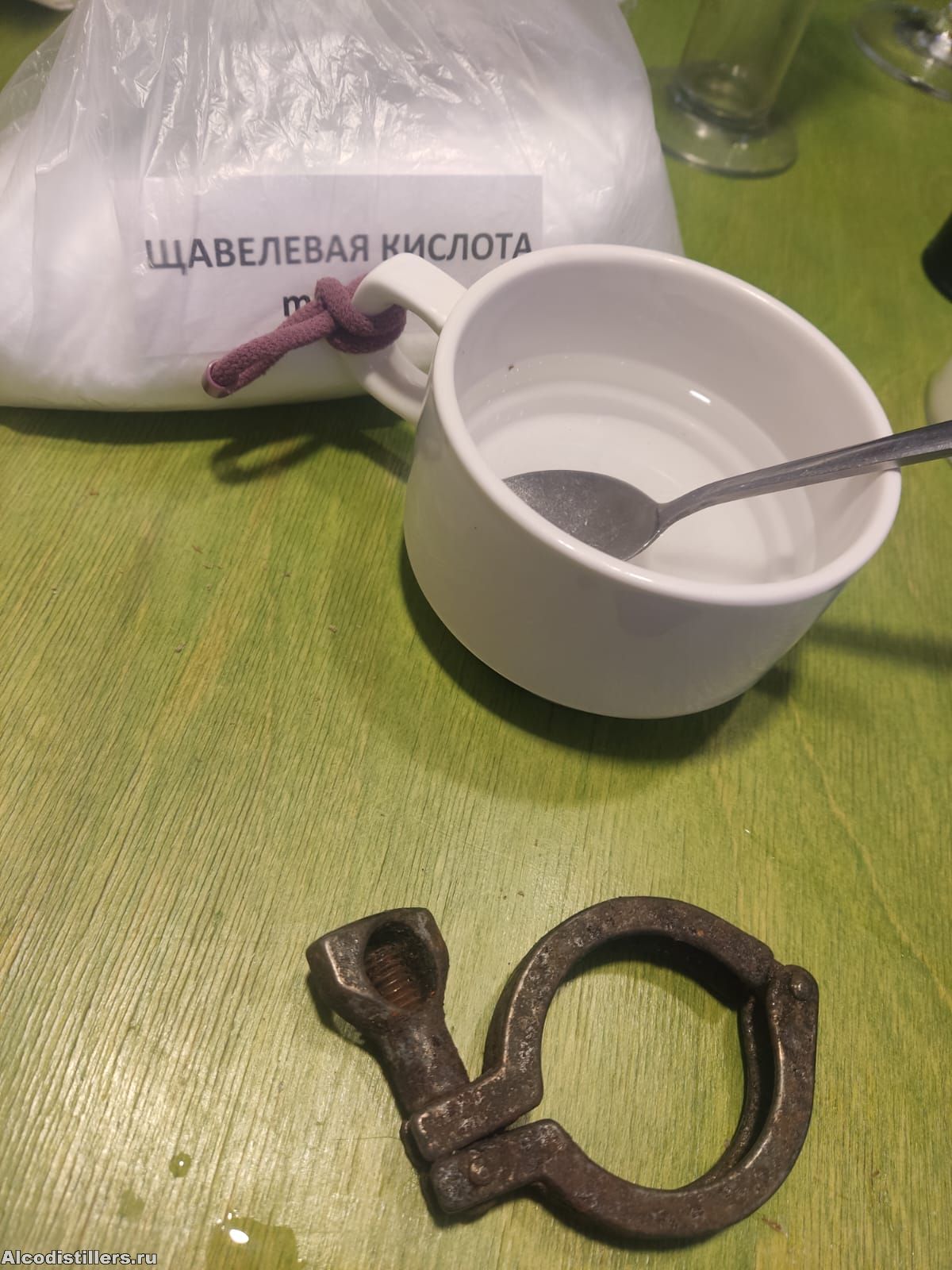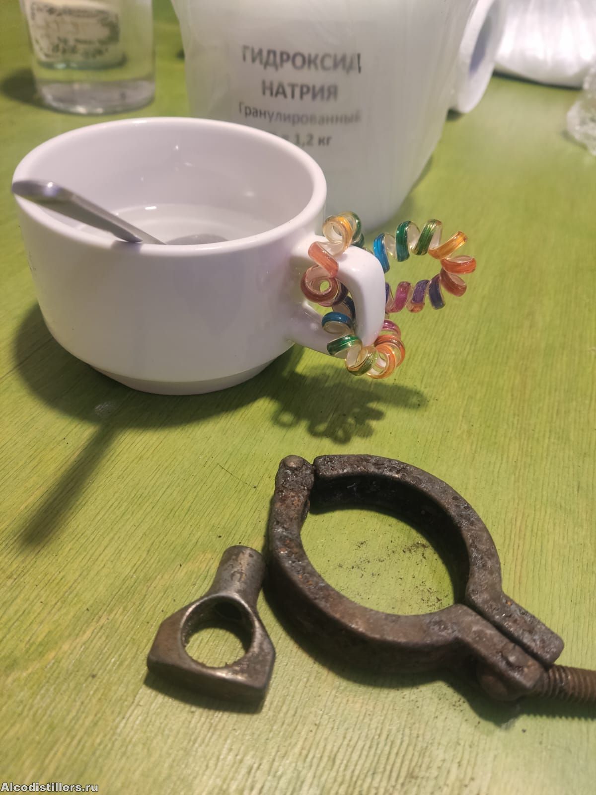 Разводил 10 грамм на 100 мл воды. Лежали в растворе сутки. Все после этого потер чистюлей.