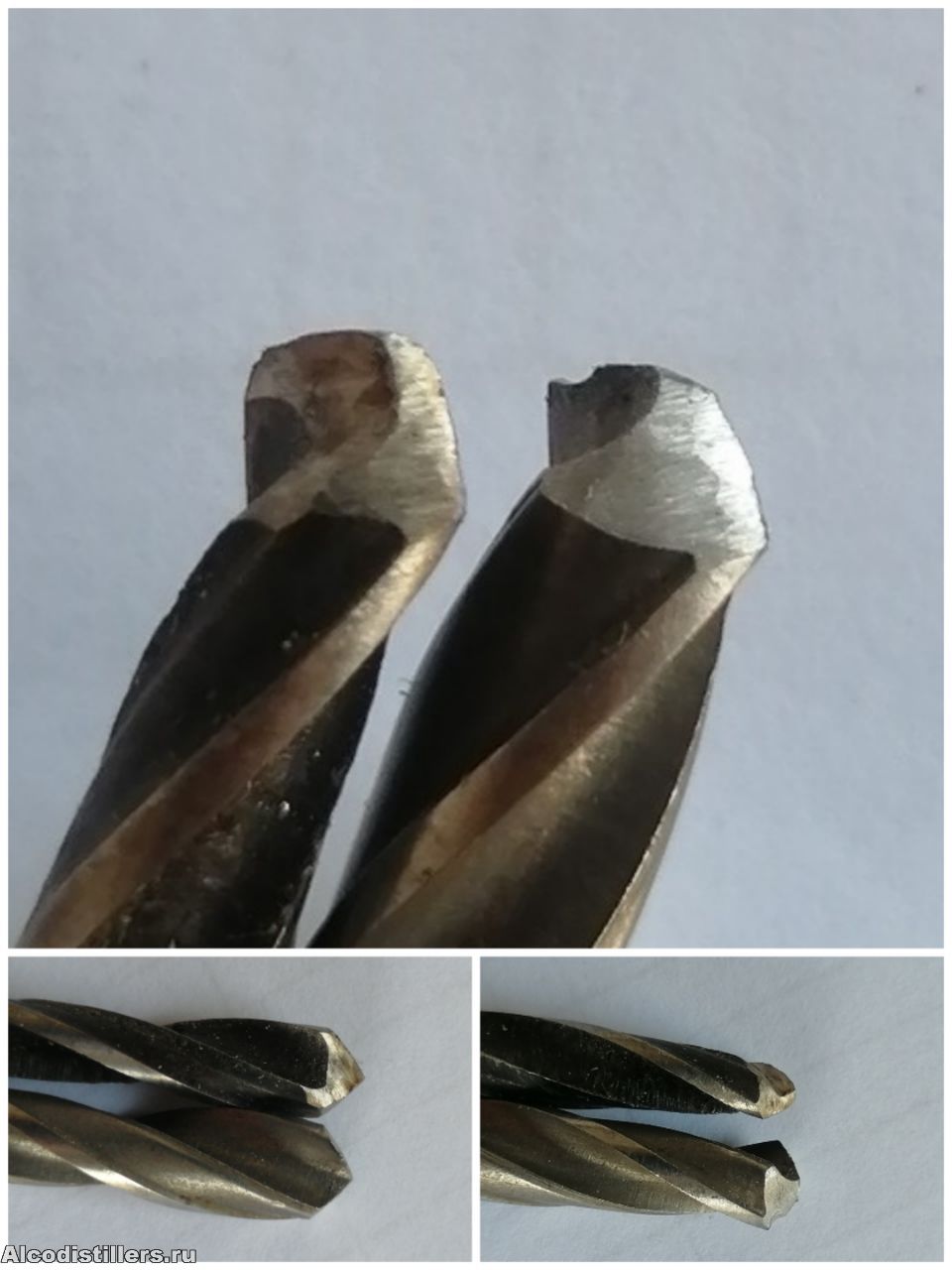 Вот так я затачиваю сверла для сверления нержавки (второе сверло со стандартной заточкой для сравнения)