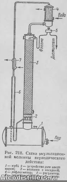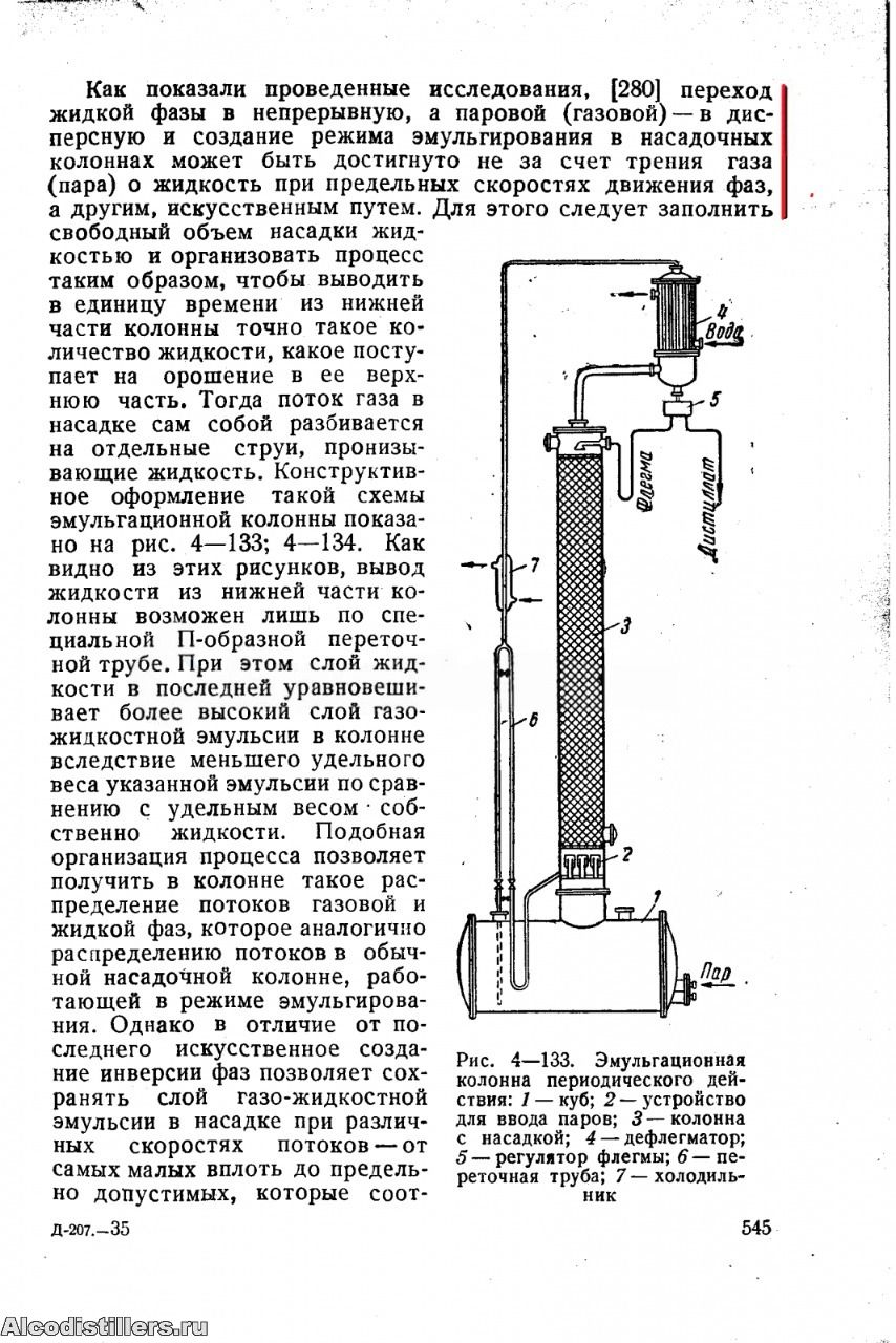 Это (кто не знает) насадочная колонна с принудительным затоплением, и автоматическим сбросом излишков флегмы. По словам авторов (картинка от Кафарова, но есть и у Стабникова, и у много кого еще), такая колонна может работать на повышенных скоростях пара. Это я так понимаю, что больше пара = больше флегмы, и ее излишки не  затопляют колонну, а сливаются в куб. Но как??